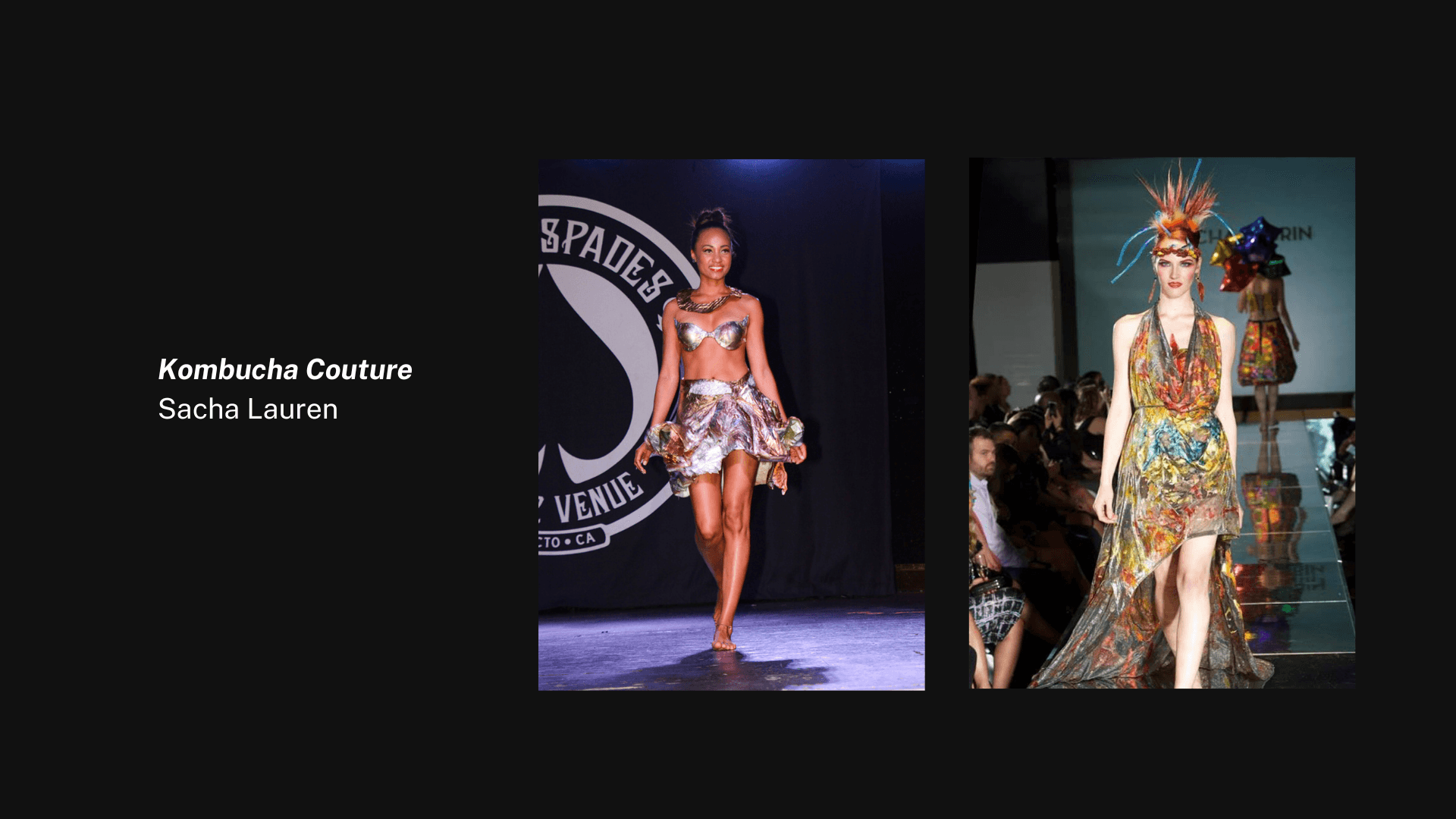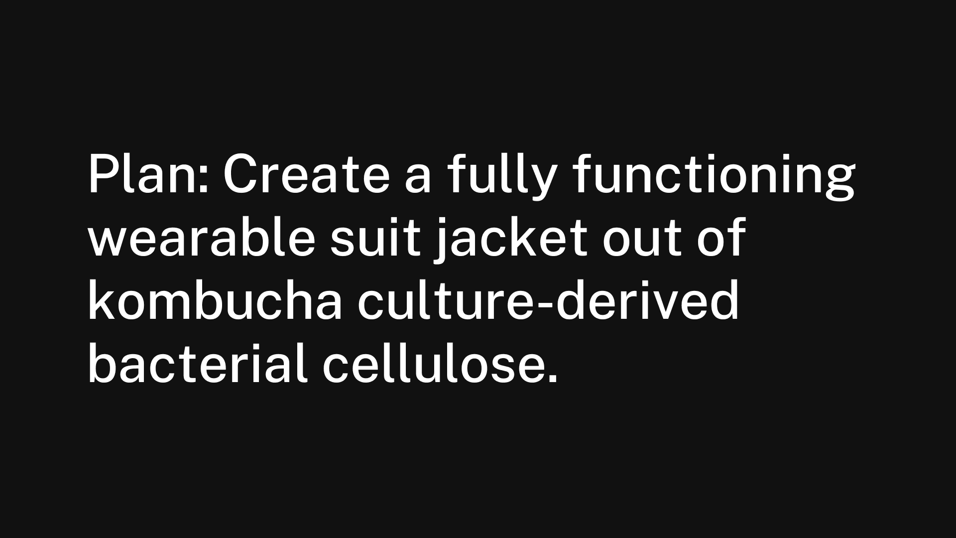 Biomaterial textile samples, kombucha-based fabric, custom blazer garment, editorial video documentation, installation display