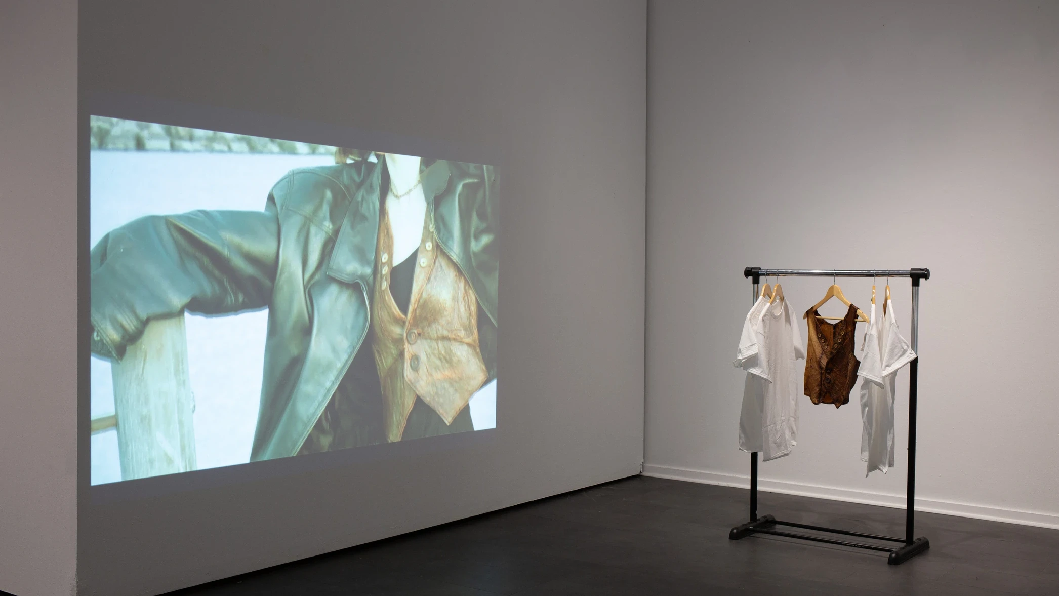 EDITORIAL VIDEO & DOCUMENTATION: To contextualize the garment as a functional piece of clothing, I directed and filmed an editorial-style video featuring a model wearing the blazer in public environments. The video documents the garment in motion and situates the experimental material within everyday fashion contexts. The final presentation included both the physical blazer displayed in the gallery and the accompanying video projected behind it, creating a dialogue between the garment and its real-world application.